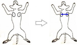イラストの通り、肩甲骨の内転は前足を開く動きに働きます。
