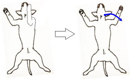 イラストの通り、肩甲骨の内転は前足を開く動きに働きます。